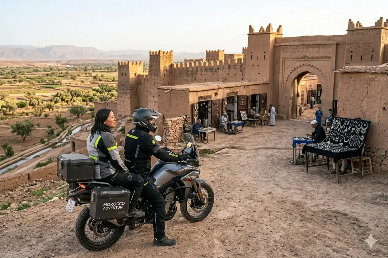 Explore the “Little Marrakech” of Taroudant as a passenger on this 5-hour cultural motorcycle tour from Agadir. No riding experience needed — discover impressive city walls, traditional souks, and authentic Moroccan atmosphere from the comfort of a CFMOTO 450MT with our professional pilot. Includes traditional lunch overlooking the medina. Perfect for culture-loving passengers seeking historic adventure.